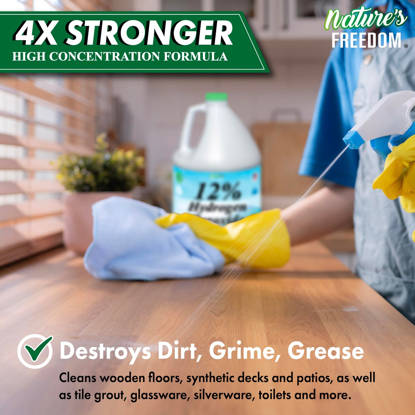 - 12% Concentration. Can be used in a spray bottle for various applications.
