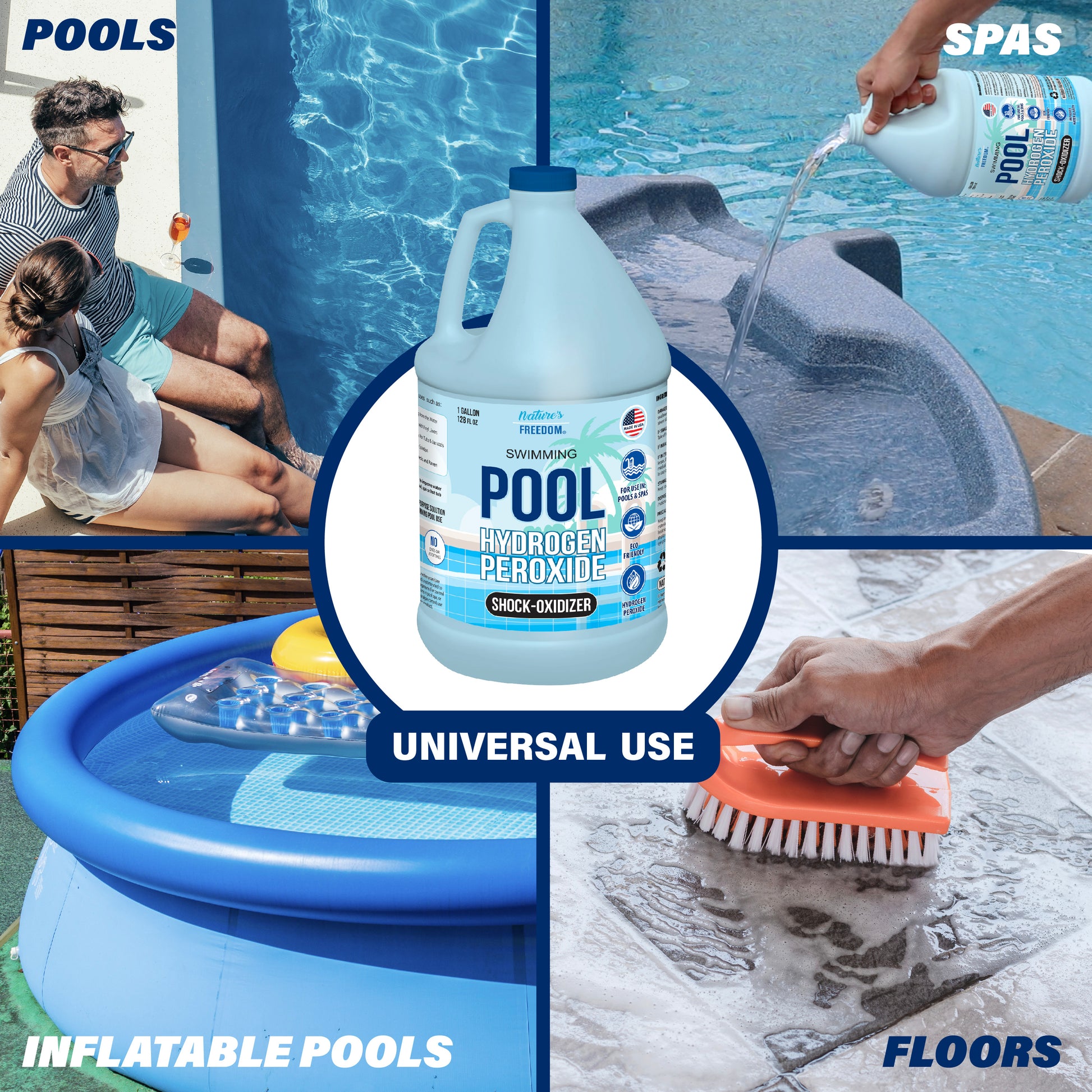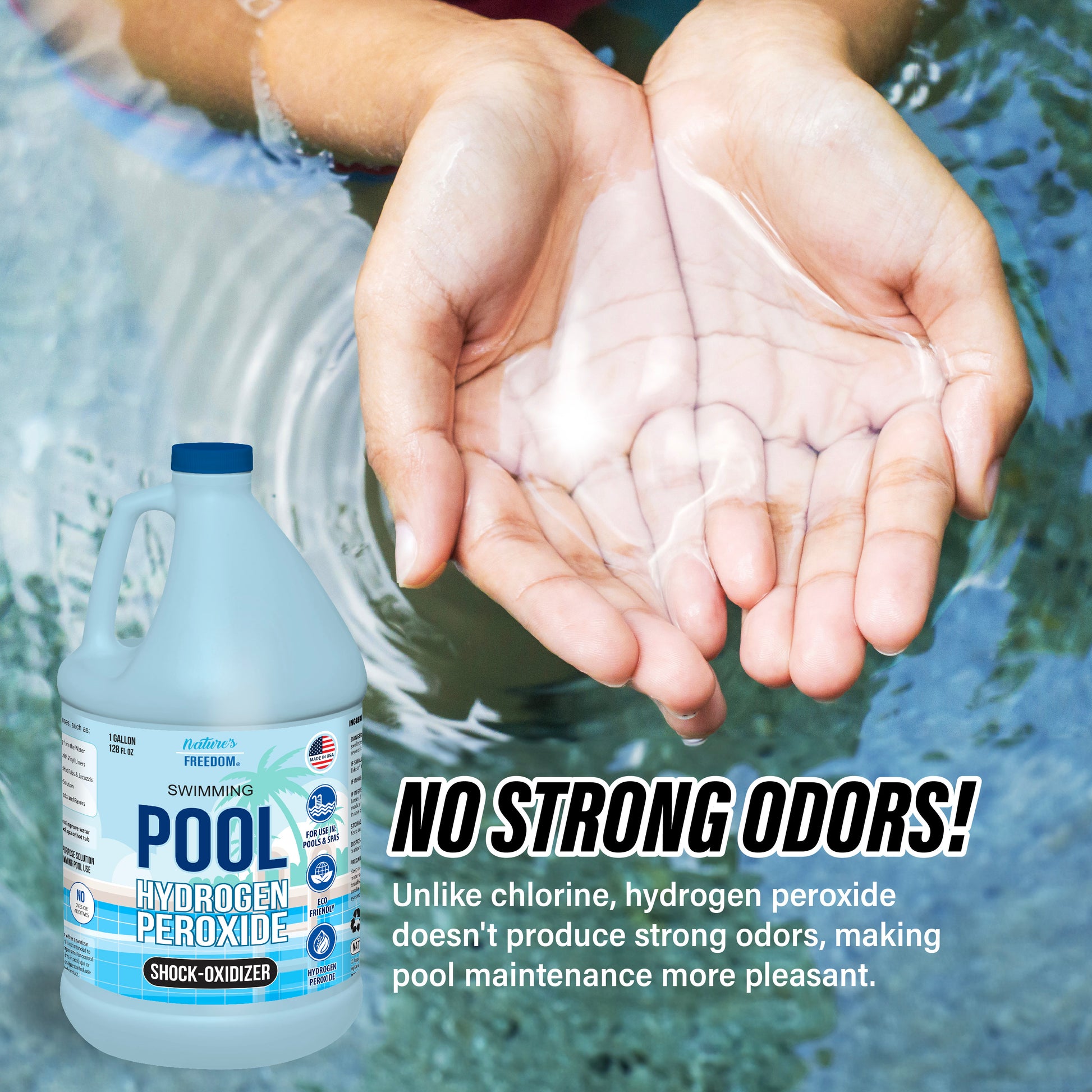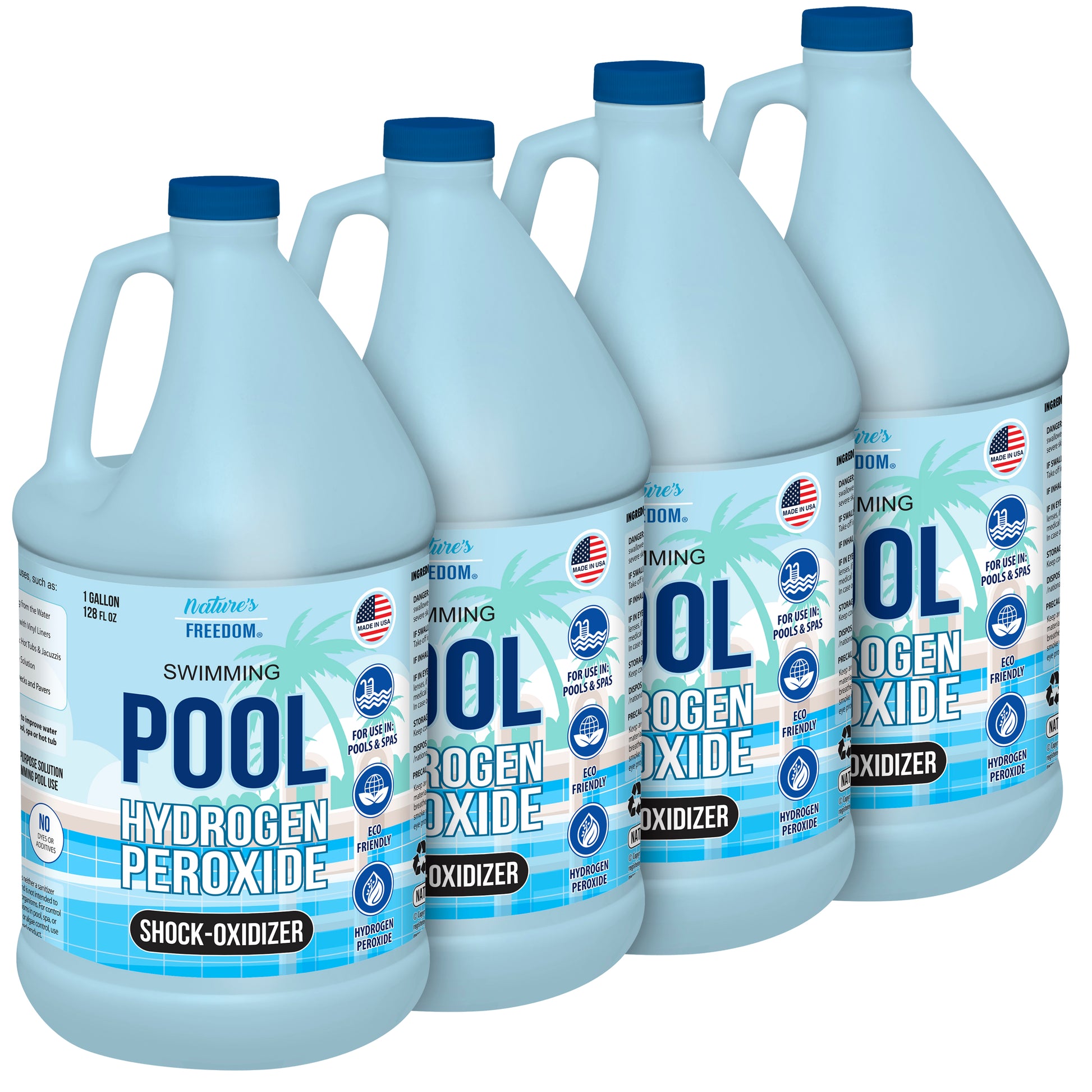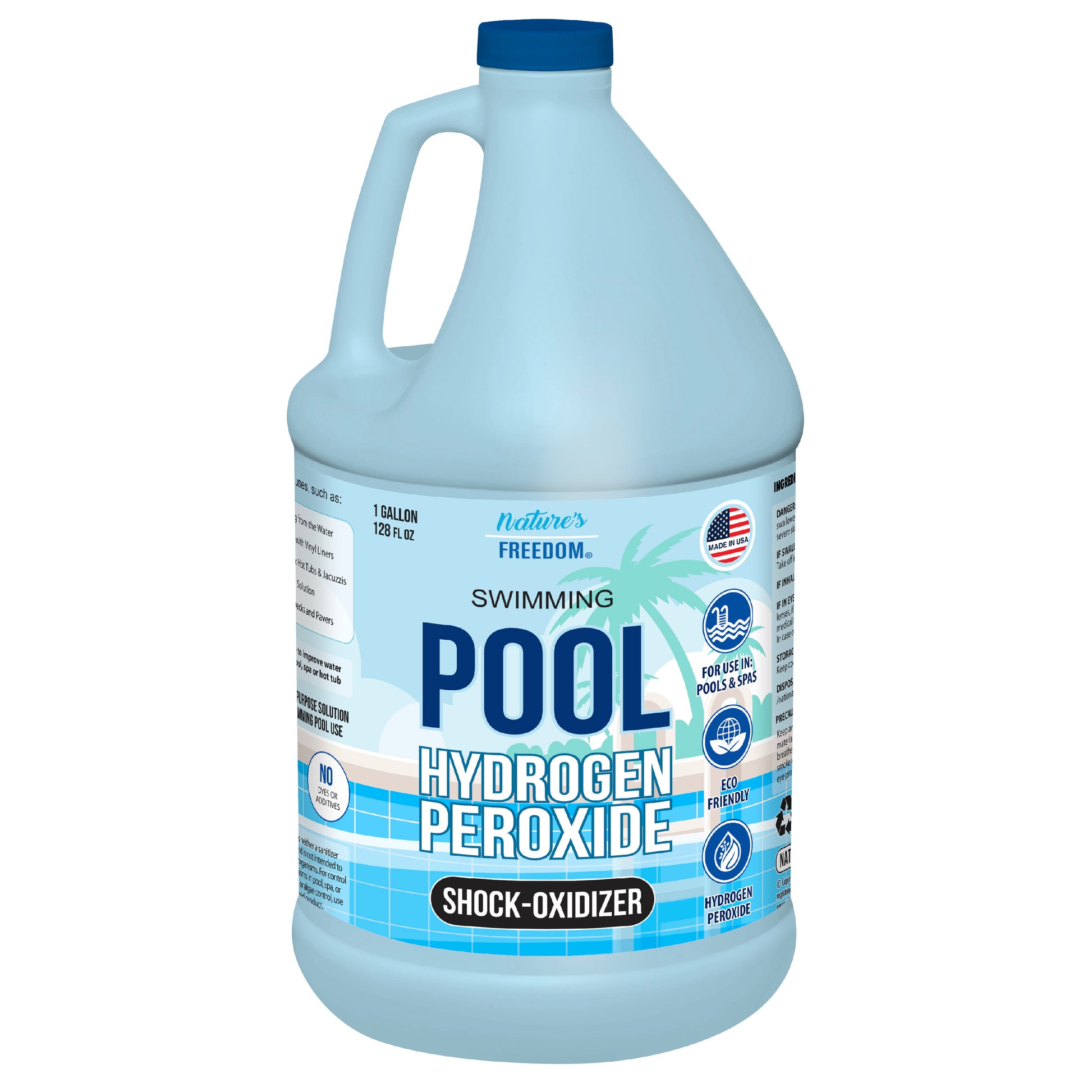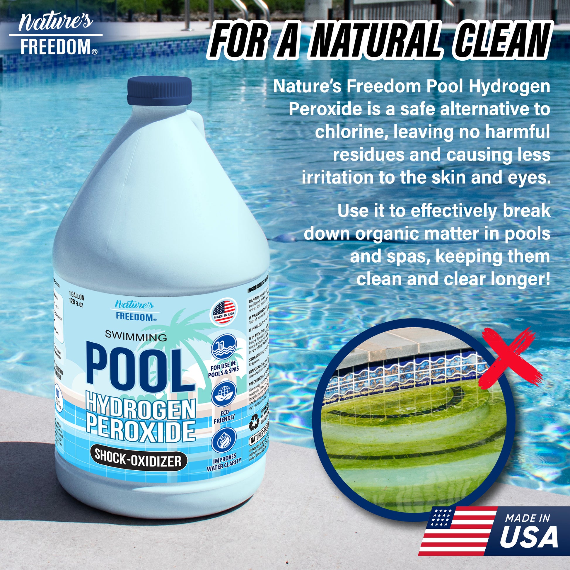 Introducing Nature's Freedom Hydrogen Peroxide 12%, the ultimate solution for pristine pool and spa maintenance. This non-chlorine shock-oxidizer is formulated with a potent 12% hydrogen peroxide concentration, specifically designed to keep your aquatic environments crystal clear and inviting.